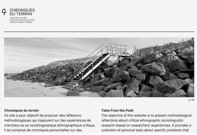 A website of methodological reflections about critical ethnographic sociolinguistic research based on researchers’ experiences. It is not a how-to guide, many of which already exist, but a collection of personal tales about specific problems that raise questions for the ethnographer. These problems are seen as opportunities to make sense of, and lead toward a better comprehension of, the phenomena, institutions and actors that we study. These tales do not give us THE answer, they primarily seek to describe and explain the processes through which the researcher finds elements of response.